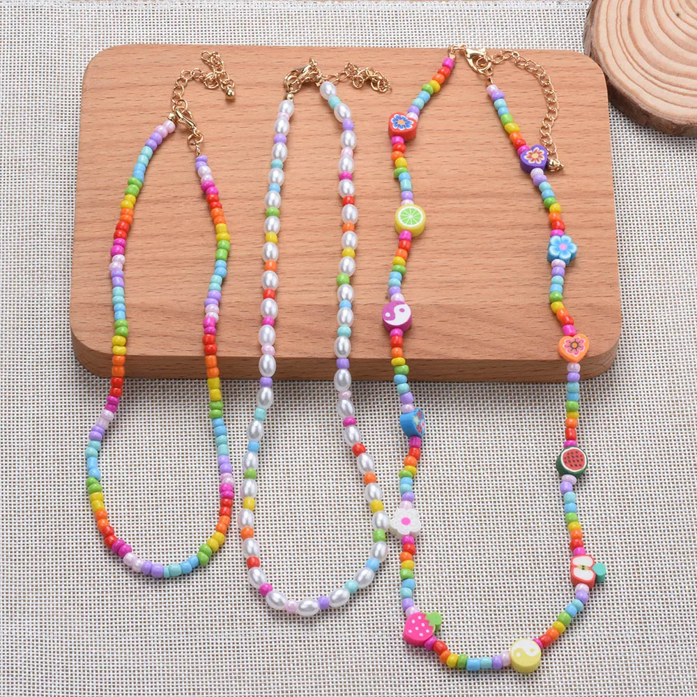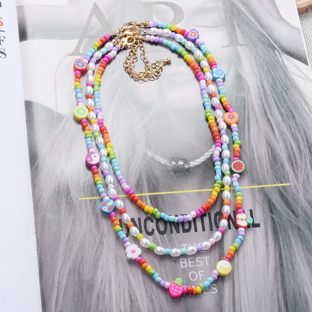 3 шт.компл. 2021 богемная Женская красочная мягкая керамическая рисовая бусина Фрукты бабочка искусственный смайлик медведь подвеска нитка