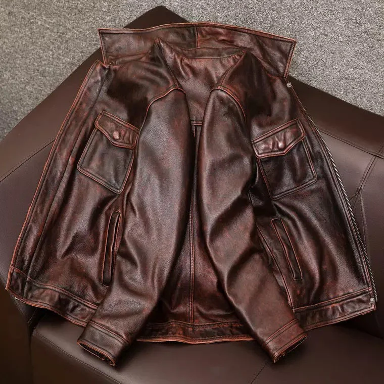 Мужская куртка из 2021 натуральной коровьей кожи, тонкая короткая куртка на осень, O20, размера плюс