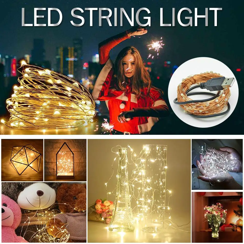 10/20 Вт, 30 Вт, 40 светильник светодиодный многоцелевой Медь строка светильник Ручной USB разъем шнура светильник Рождество дома декорации вечеринок 1/2/3/4 м