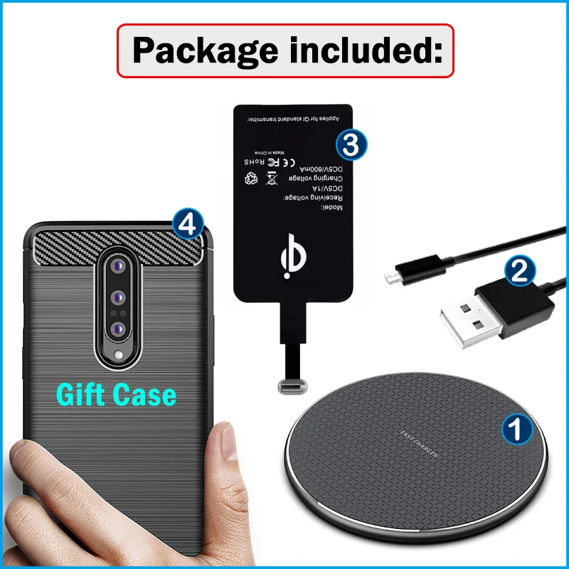 Беспроводное зарядное устройство Qi для Oneplus 6, 6T, 7, 7T Pro, 8, 8T, 9R, USB Type-C, в подарок, чехол