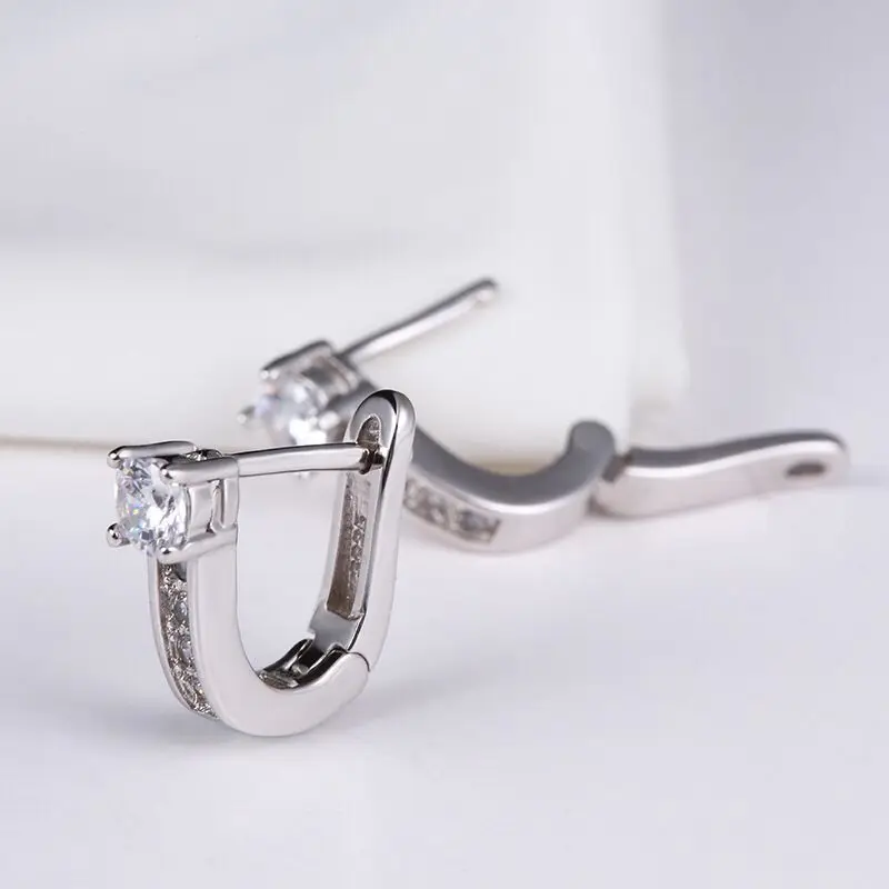 Серьги из серебра пробы, U-образные циркониевые маленькие серьги в форме цветка для женщин