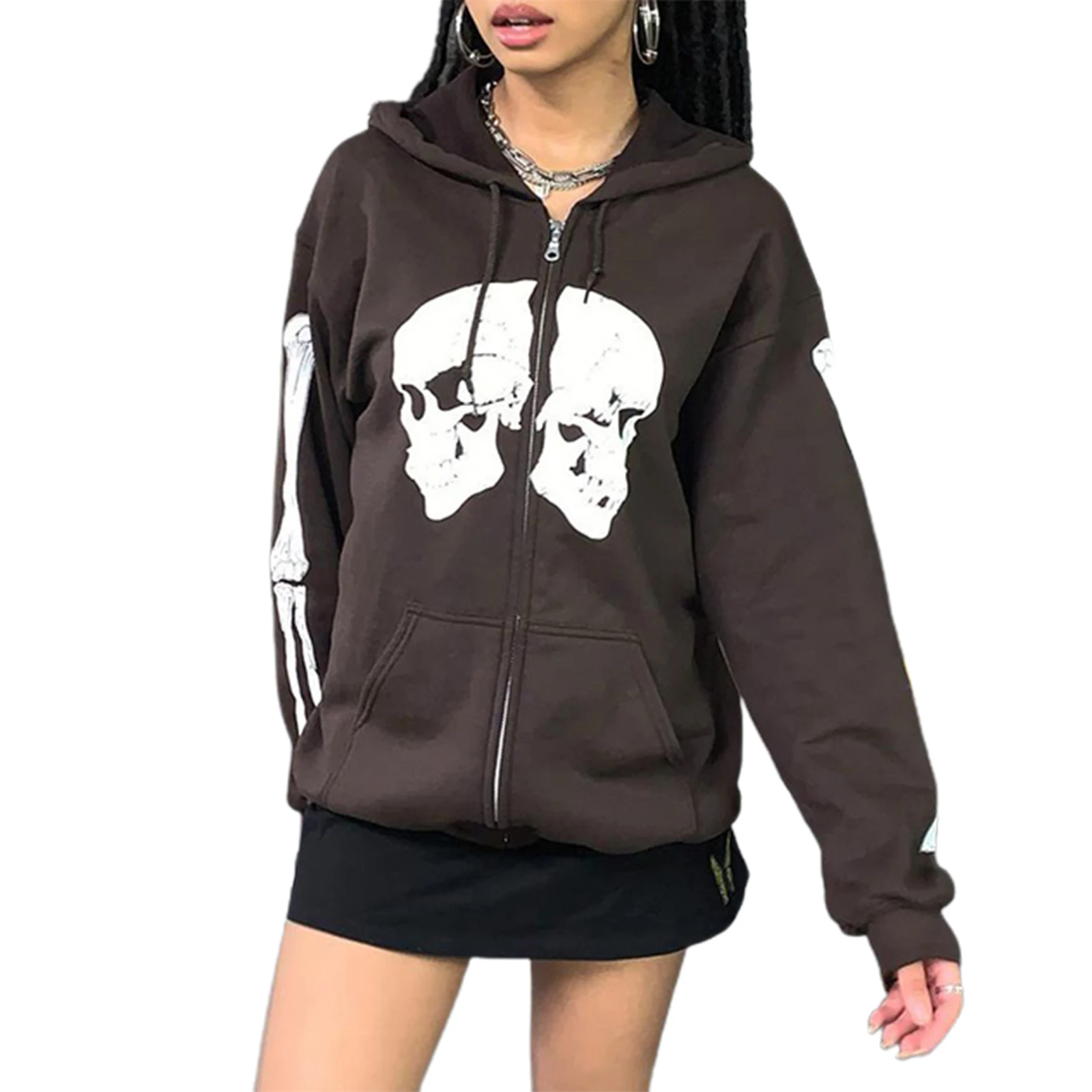 Женский личный уличный свитер с капюшоном, повседневный свободный свитер с длинными рукавами и принтом черепа для взрослых, с завязками и карманами