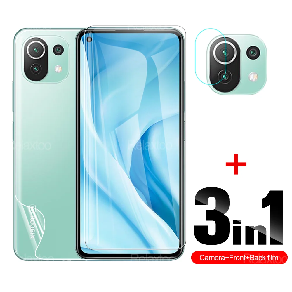 Закаленное стекло 3 в 1, передняя + объектив камеры + Гидрогелевая задняя пленка для Xiaomi Mi 11 Lite 5G 4G, защита экрана, защитная пленка