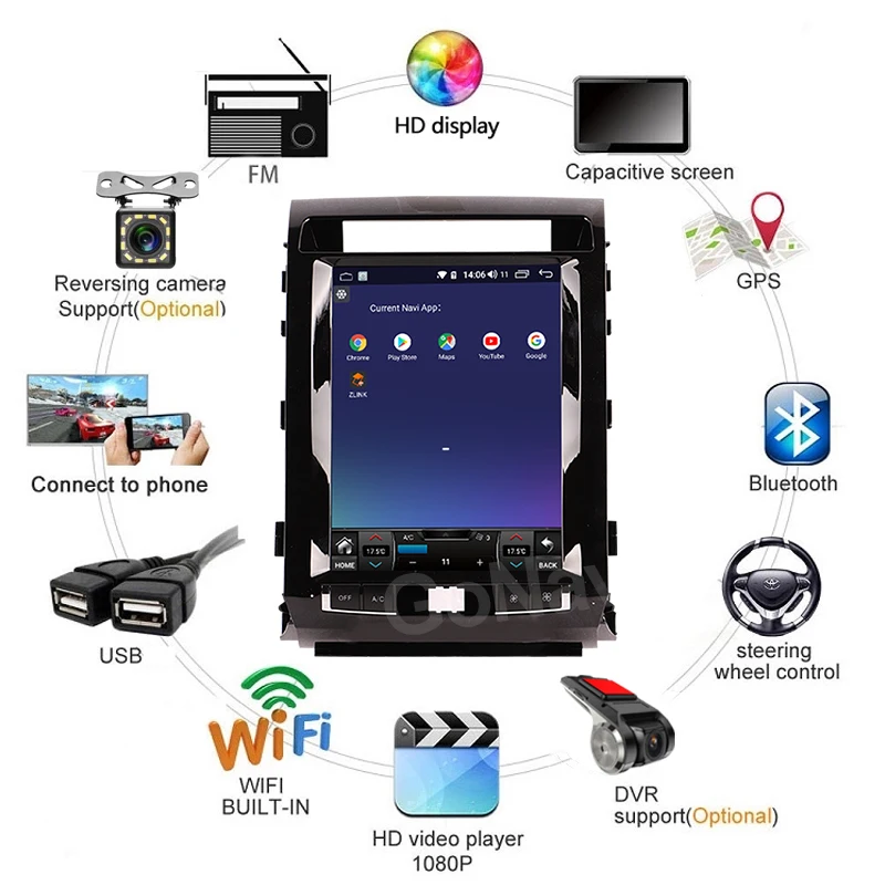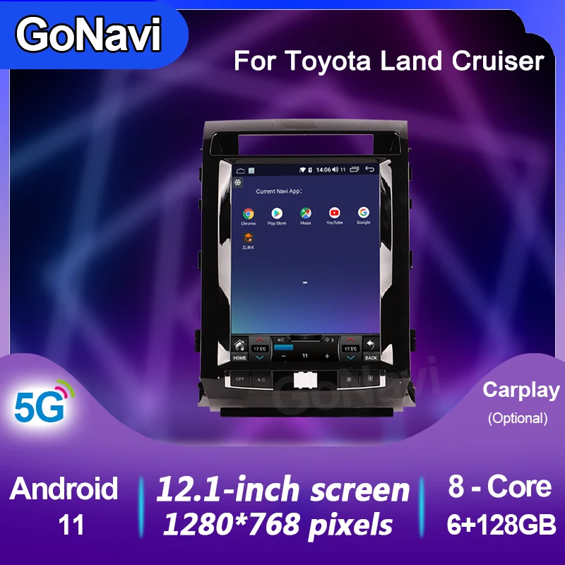 GoNavi для Toyota Land Cruiser Android 11 автомобильное радио аудио DVD MP5 интеллектуальная сенсорная Центральная мультимедийная экранная система 2008-2015