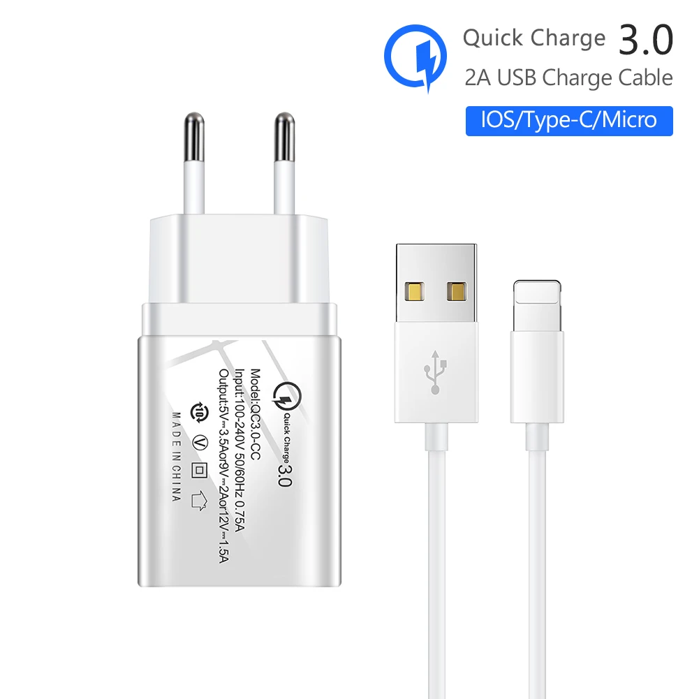 Настенное зарядное устройство с кабелем для Apple iPhone Android Micro USB стабильный кабель Быстрая зарядка 3,0 USB адаптер питания высокое качество