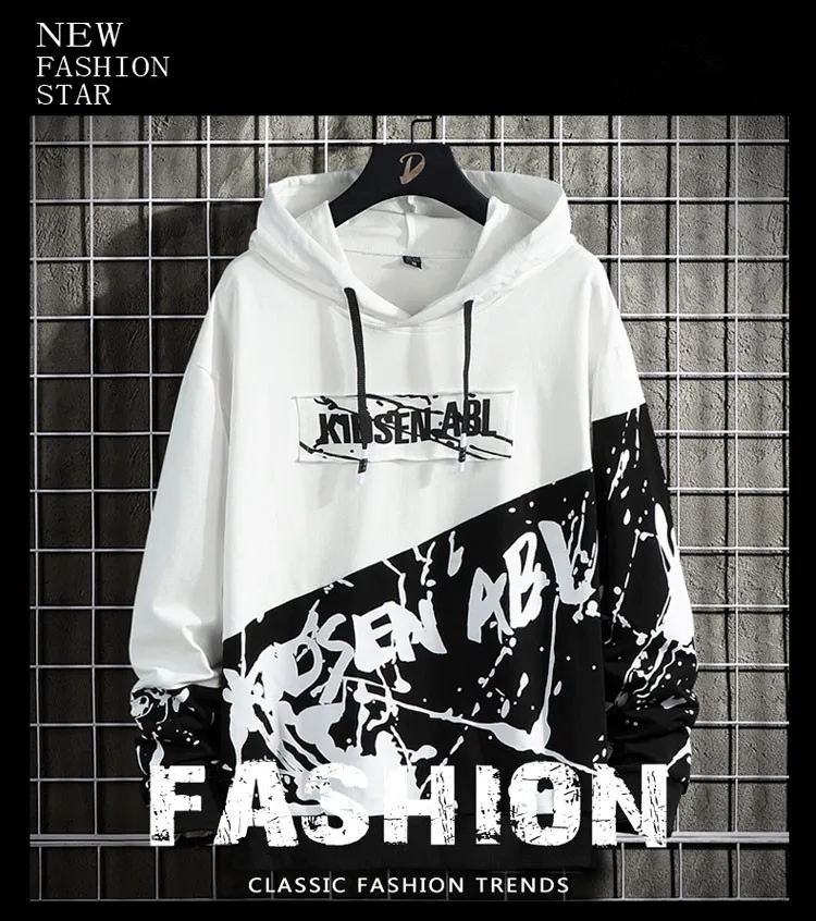 Толстовка мужская составного кроя с капюшоном, свитшот с принтом в стиле хип-хоп, модная уличная одежда, повседневная одежда с прострочкой