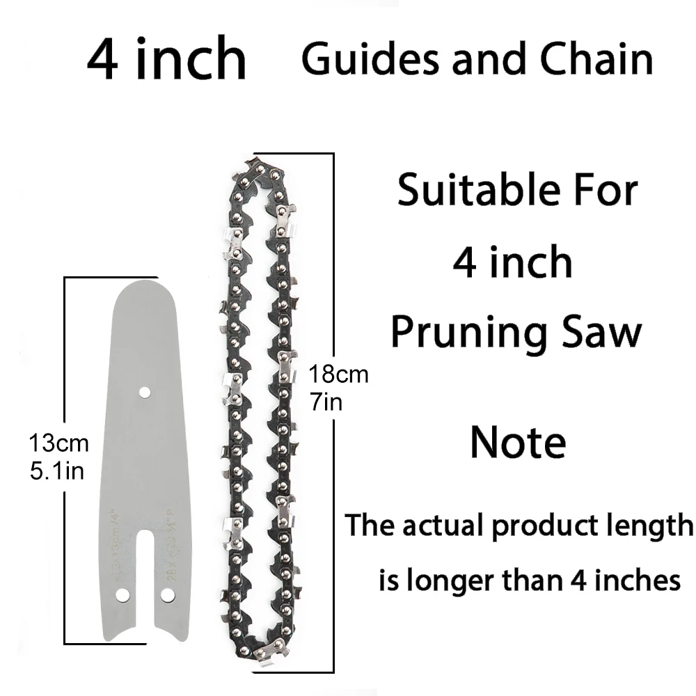 Подробное описание: Название: 4/6 дюймовая цепная пила и направляющая цепной пилы Материал Цепь цепной пилы: 65Mn Лезвие: сплав Направляющая пластина: сталь Размер: 4 дюйма/6 дюймов Примечание: возможны незначительные отклонения в размерах из-за различных измерений вручную. Спасибо за понимание. Описание подсветки: 【Адаптация к 4/6 дюймовым мини-цепным опилкам-это оригинальный аксессуар, подходит для всех 4/6 дюймовых мини-бензопил на рынке. Совместимость с 24V, 26V 36V и других 4-дюймовый мини-пилы на рынке, он является практичным и хорошее средство для ежедневного использования. 【Резка быстрее и проще в использовании 】портативная пила использует наш маленький светильник цепной пилы, чтобы разрезать бревна на большие веточки за несколько секунд. Эта гибкая цепная пила работает плавно и экономит вам много денег. 【Передовые технологии производства 】 цепь глубоко закалена, чтобы обеспечить плавную резку и оптимальную смазку. Срок службы цепи пилы длиннее и гладче. Меньше износа цепи и растяжения означает меньшую регулировку натяжения цепи. 【Идеально подходит для домашнего использования 】наша сменная мини-пила-цепь очень подходит для домашнего садоводства и падающих деревьев, с гладким дизайном. Кроме того, наши цепи долговечны, пыленепроницаемы и используется для длительного времени. [Запасные аксессуары] цепь цепной пилы-это Сменные аксессуары, срок службы цепной пилы более длинный и гладкий. Прочный и пыленепроницаемый, цепь может быть применена в течение длительного времени. Практичный и полезный инструмент для ежедневного использования. Изготовлен из высококачественной стали и Mn, материал: вы можете использовать его безопасно. Список деталей: 1 цепная пила 1 X направляющая цепной пилы