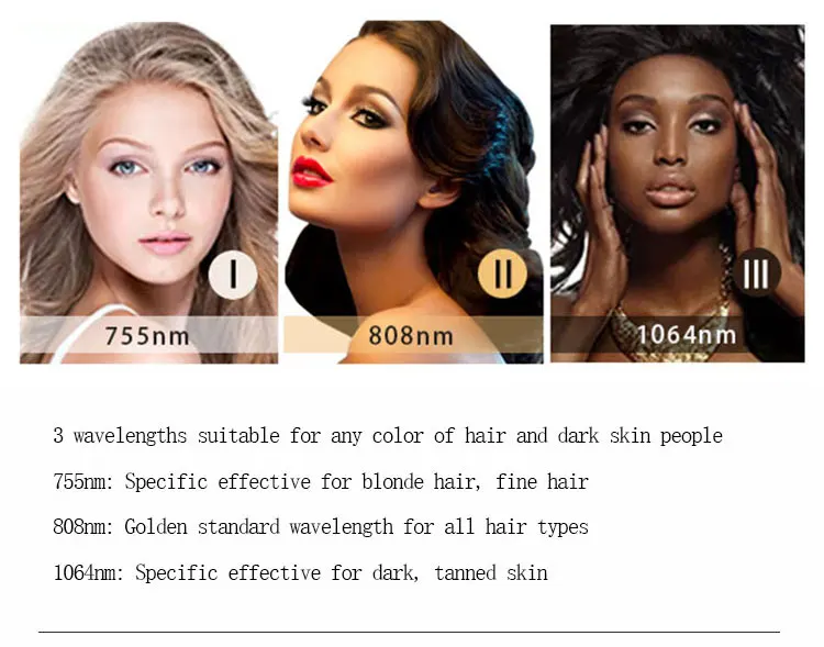 Безопасное удаление волос почти на всех типах кожи, большой размер пятна, гораздо более эффективно для удаления волос большой области.