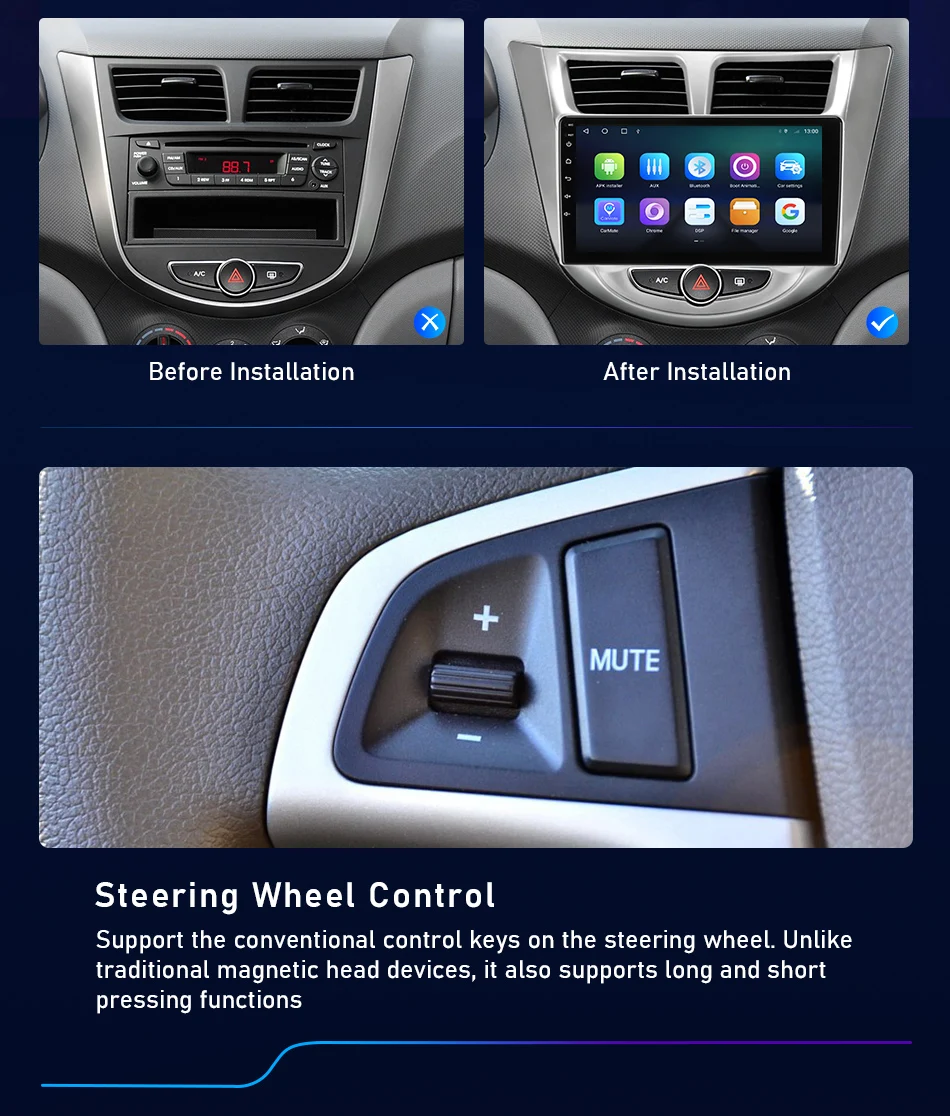 По сравнению с оригинальным автомобилем, экран больше, цвета более яркие, и он поддерживает просмотр под разными углами. Новая рама сделана в соответствии с оригинальным автомобилем, который идеально сочетается с вашим автомобилем и прост в установке.