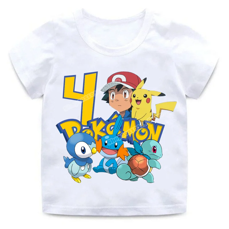 Детские футболки с покемоном, Пикачу, Сквиртл, номер 1-9, мультяшная Футболка с принтом, футболки с коротким рукавом для мальчиков и девочек, подарки на день рождения