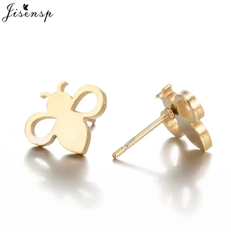 Серьги-гвоздики женские из нержавеющей стали, с мультяшным животным, колибри, пчела, попугай, овечка, пирсинг, бижутерия