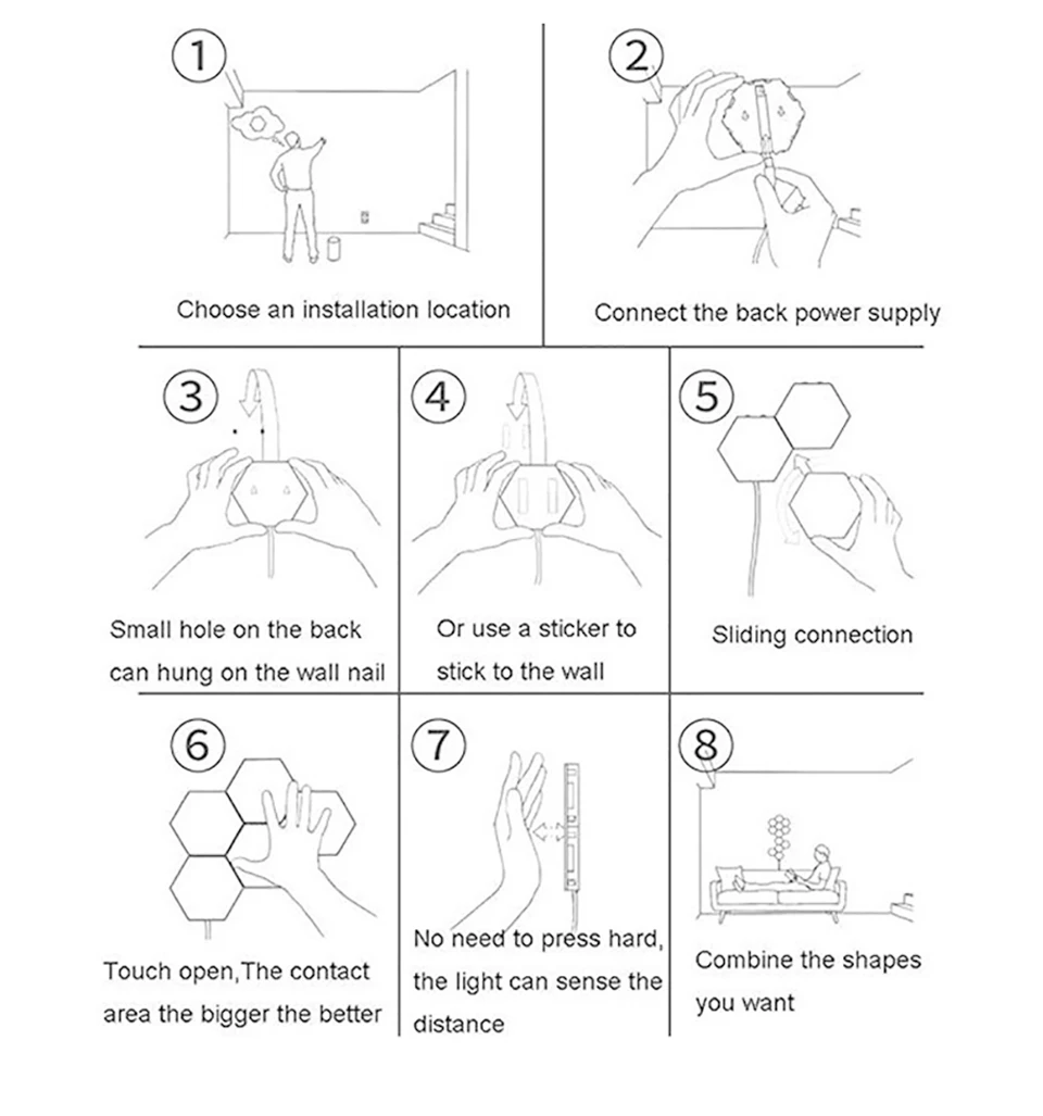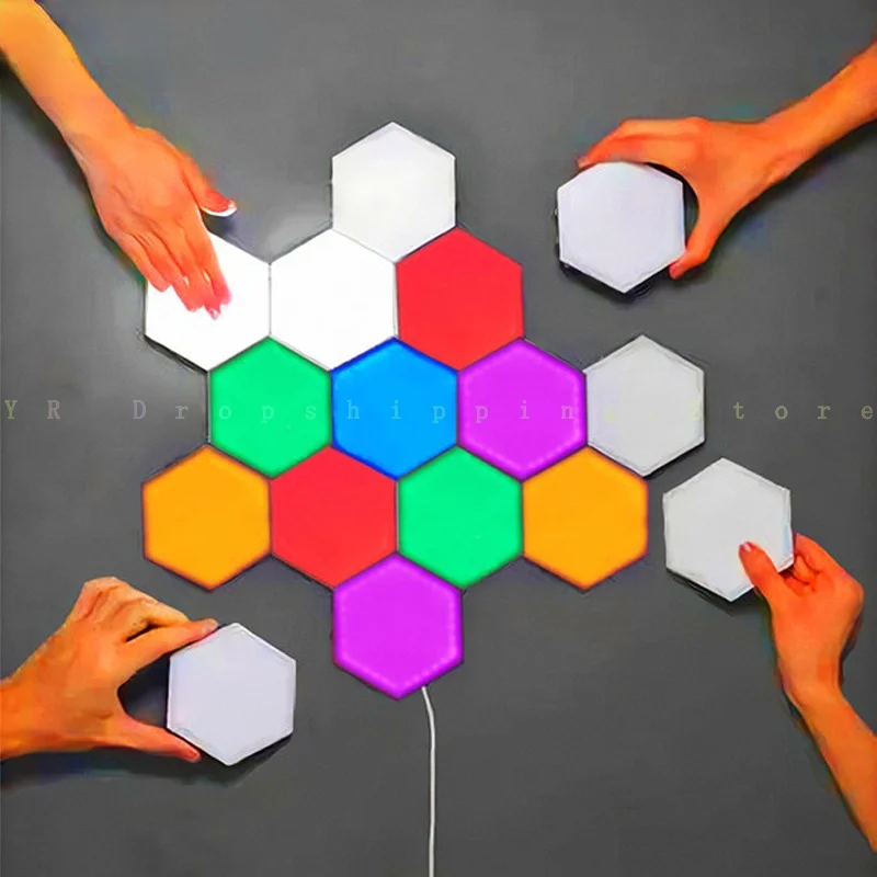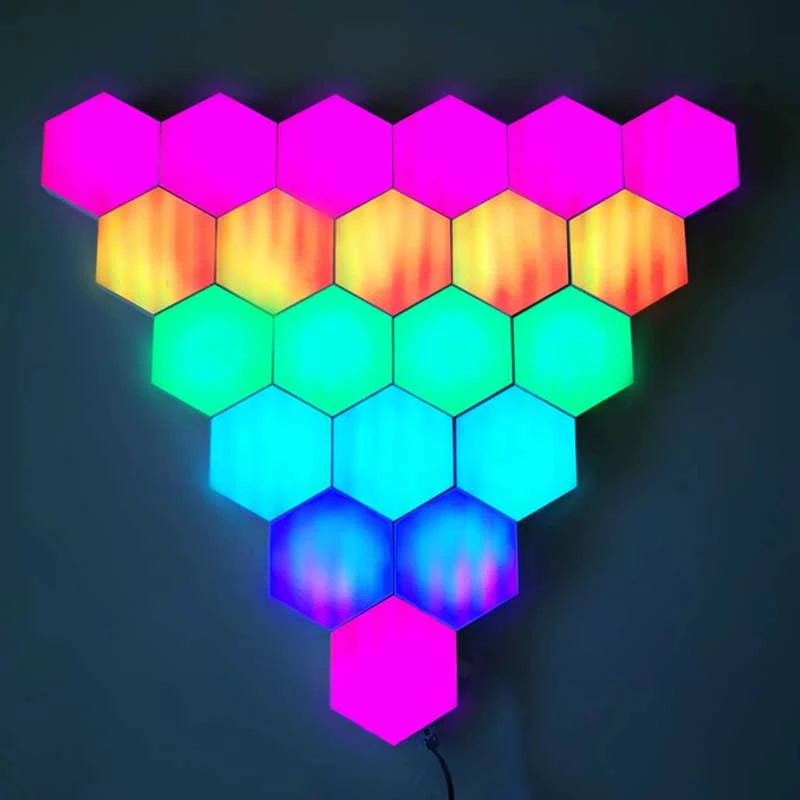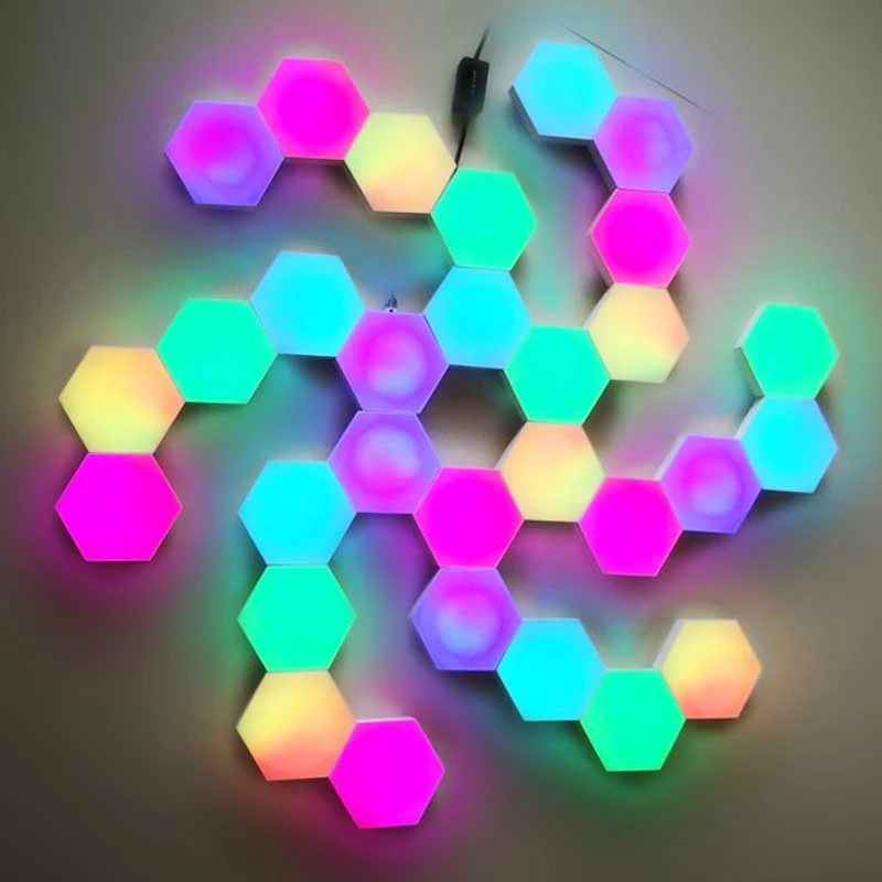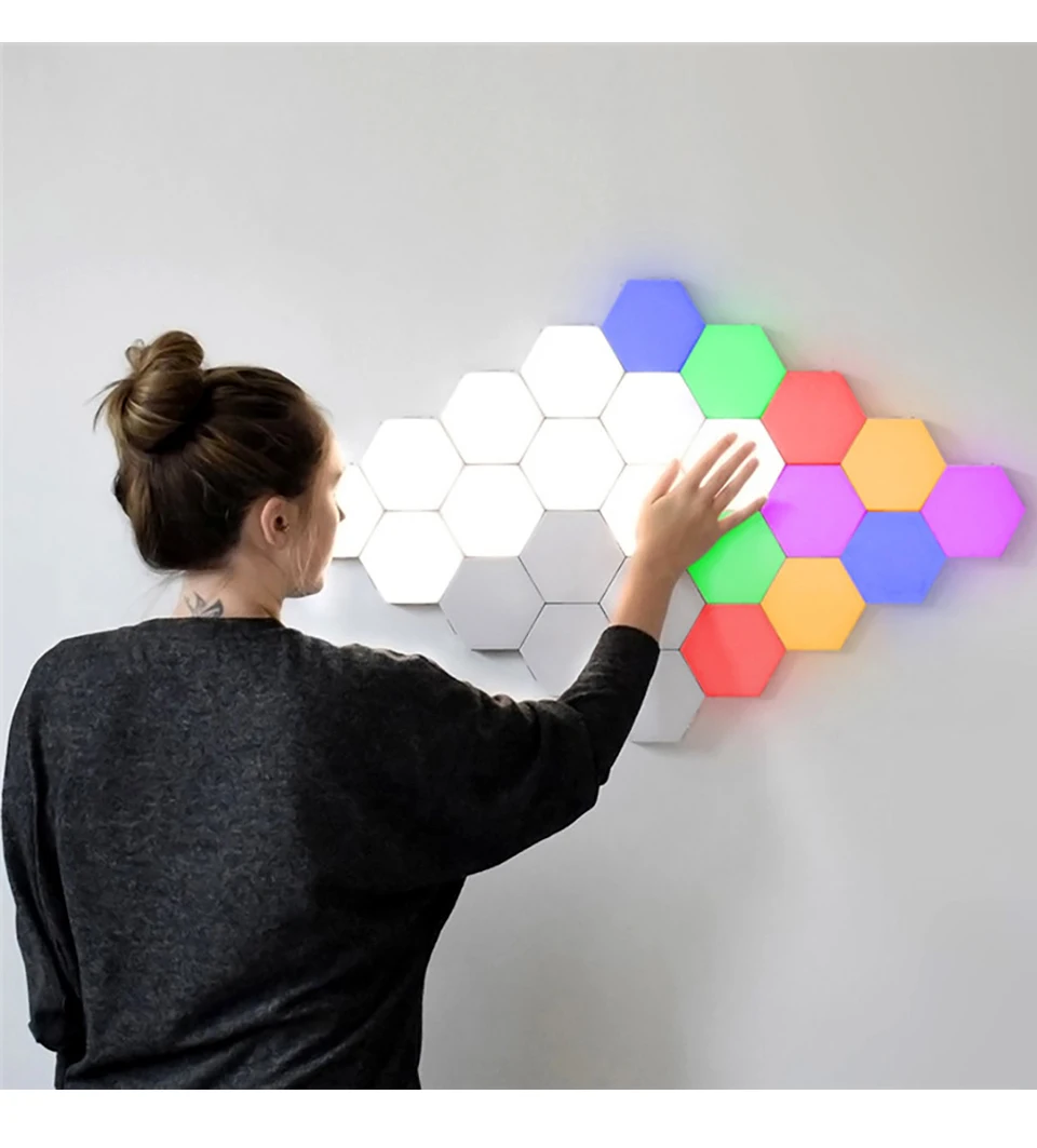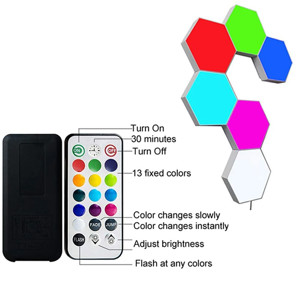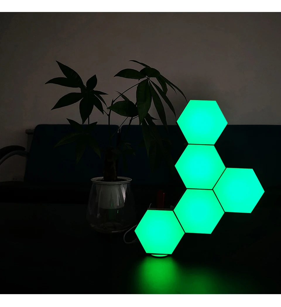 Product Information:1.Voltage: Input Voltage 220V /110V,Output Voltage 24V2.Light Color:Colorful3.Material: ABS4.Product Type:Only Lamp/Lamp with usb cable and remote control6.Turn On/Off:Touch Sensitive/Remote Control7.One usb adapter can connect up to 20 lightFeatures:UPGRADE RGB Color - We have upgraded the hexagonal color making the light source more uniform and colorful, and each lamp can be individually illuminated, so that you can change the color of a single lamp to suit the atmosphere of different environments.I'm sure you'll like it when you have it.RICH COLOR MODE - Power on is color gradient, first touch red, second touch green, third touch blue, fourth color jump, fifth off. Touch the color gradient again. This is the cycle. When fade is infinite color cycle fade, and when jump is 7 colors cycle jump.CUSTOMIZE YOUR SPACE: It can be freely combined with a different number of modules to create the pattern you want. It can be used as night light or wall art to add a bright style to your home.PERFECT GIFT - Perfect and sweet gift for your lover, kids, families, friends, coworkers.With 5v safety voltage, you can use it with your family and friends to play games, create a romantic bedroom atmosphere, and more.