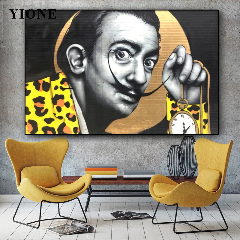 Абстрактная граффити Сальвадора Дали, холст, живопись, уличное искусство, фигурка человека, плакат, печать, Настенная картина для гостиной, спальни, Декор