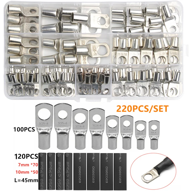 Набор медных кольцевых клемм для автомобиля, 60220CPS, обжимной разъем для проводов оголенный кабель, припаянные клеммы для аккумулятора, набор разъемов