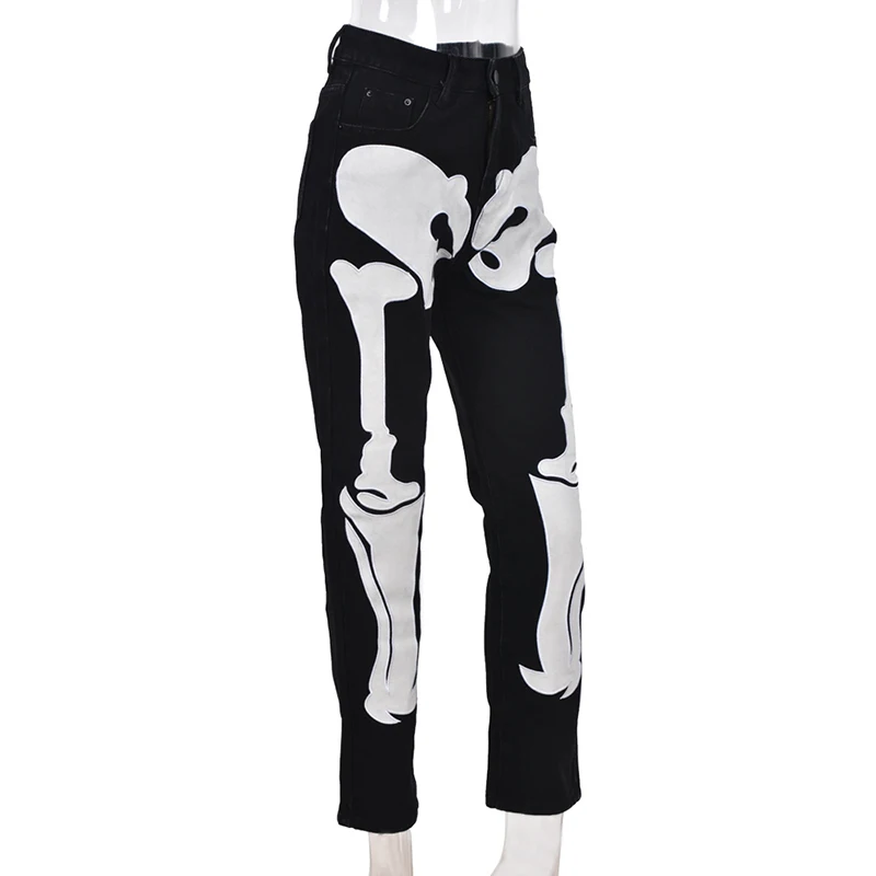 2021 модные женские джинсы на Хэллоуин с принтом костей, стильные ж...