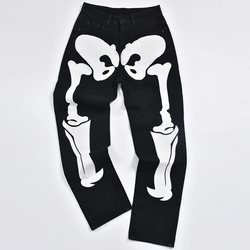 Осень 2022, женские винтажные джинсы Gitana с принтом скелета, штан...