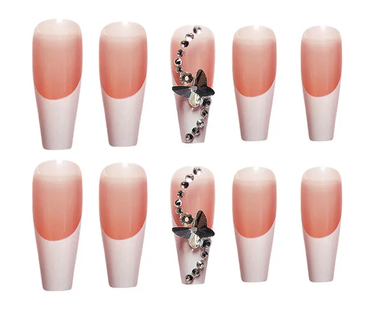 24 шт. Съемная бабочка стразы французский балерина, накладные ногти...