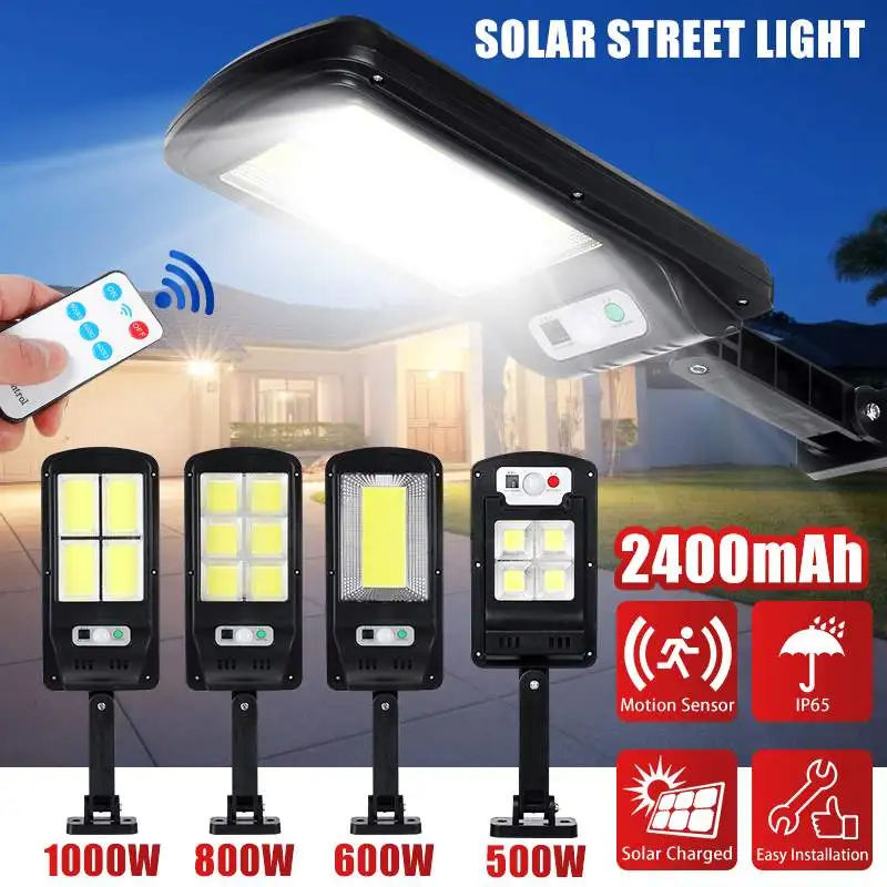 Уличный светодиодный светильник на солнечной батарее с дистанционным управлением, настенный светильник с Cob-датчиком, инфракрасный датчик движения, 5006008001000 Вт, уличный светильник, садовый светильник IP65