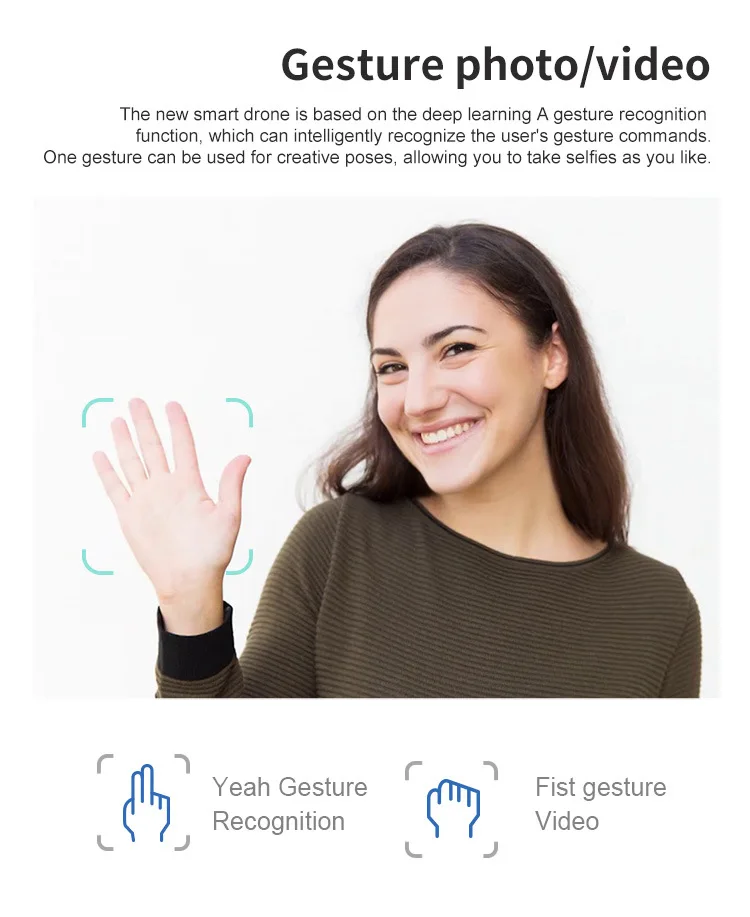 -Следуй за мной. Куда бы вы ни отправились, Дрон будет следовать и захватывать вас автоматически. Оставайтесь на фото в любое время, вы можете легко достичь сложных линз и обеспечить функции полета без рук и селфи.