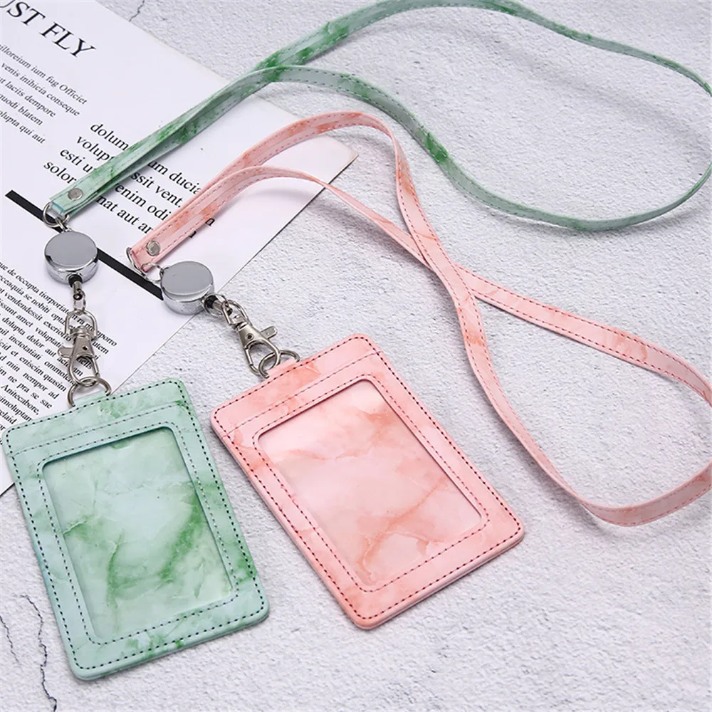 Выдвижной чехол для бейджа со шнурком, кожаный чехол для пропуска д...