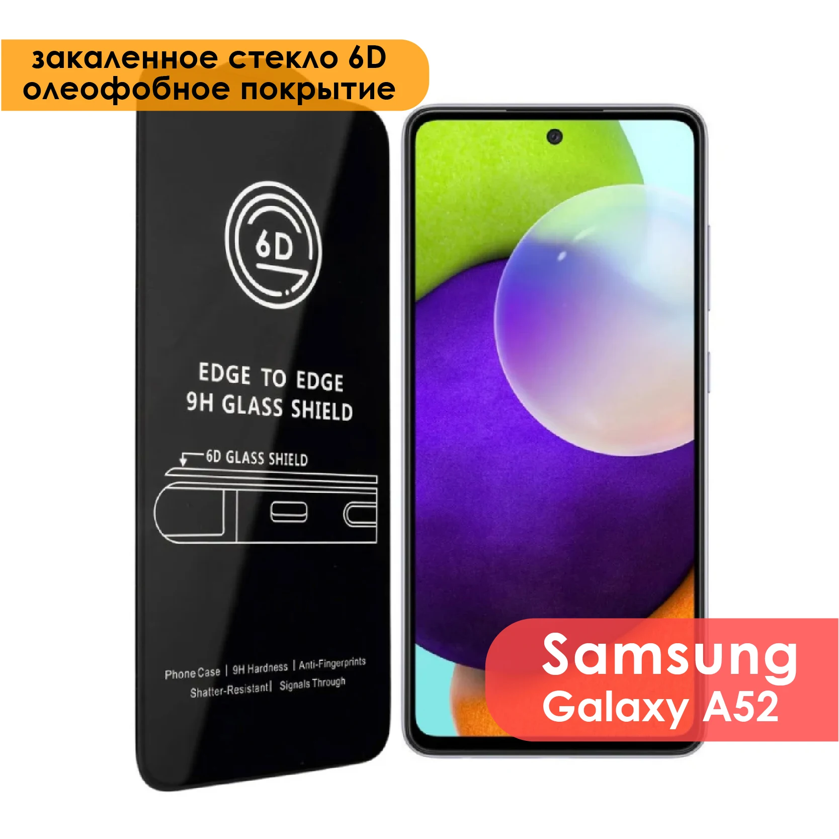 Защитное стекло 6D для Samsung Galaxy A52 (Самсунг Галакси А52)