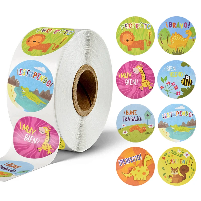 500 шт., круглая наклейка с изображением животных, 1 дюйм
