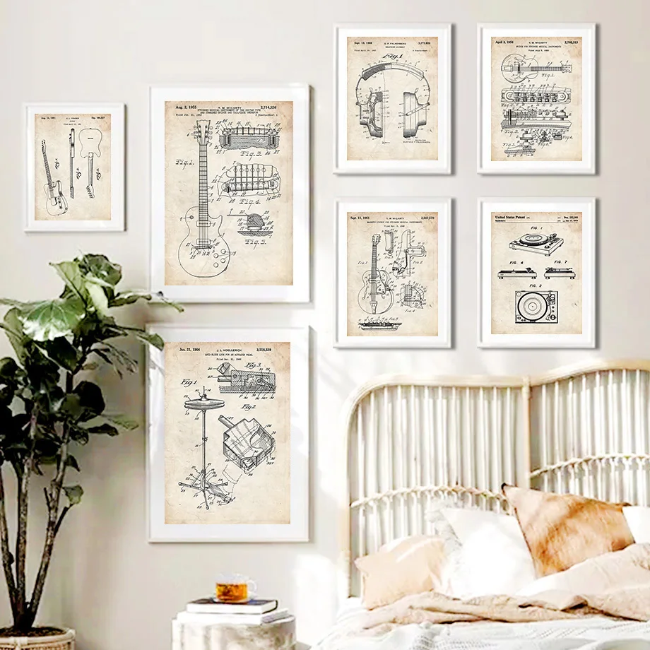 Укулеле гитара барабан DJ Аудио гарнитура бас настенное Искусство Холст Картина скандинавские плакаты и принты картины для гостиной домашний декор