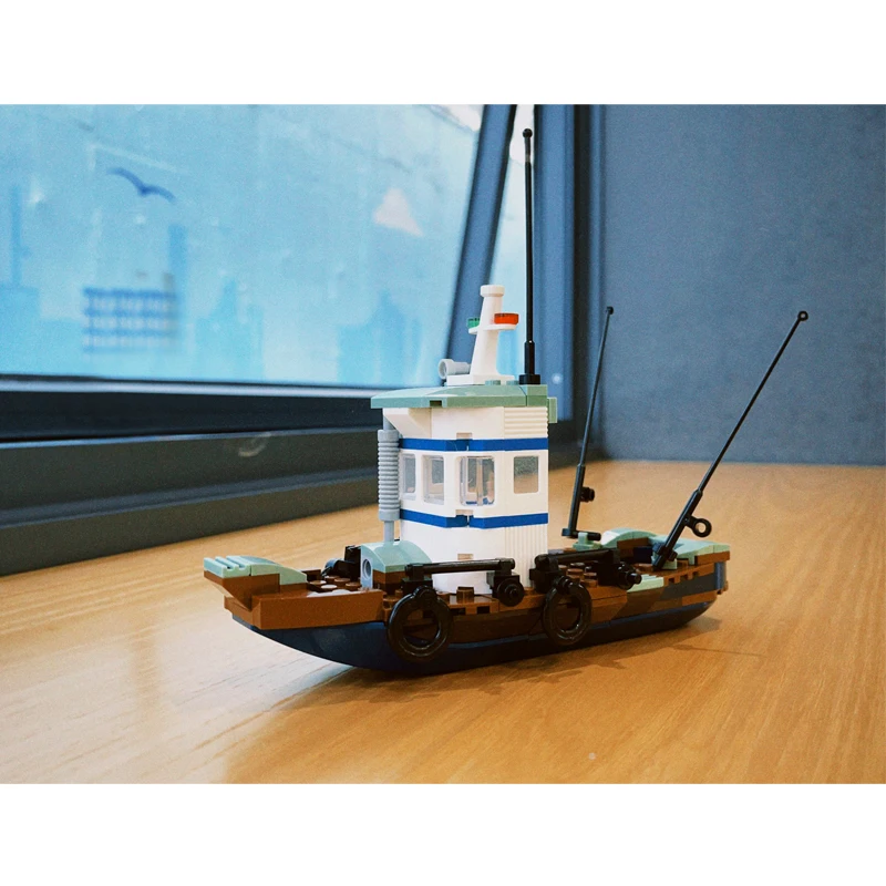 Город МОС, модель рыболовной лодки, деревня, наборы строительных блоков, круизный лайнер, исследование океана, Акула, лодка, кирпичи, игрушки для детей