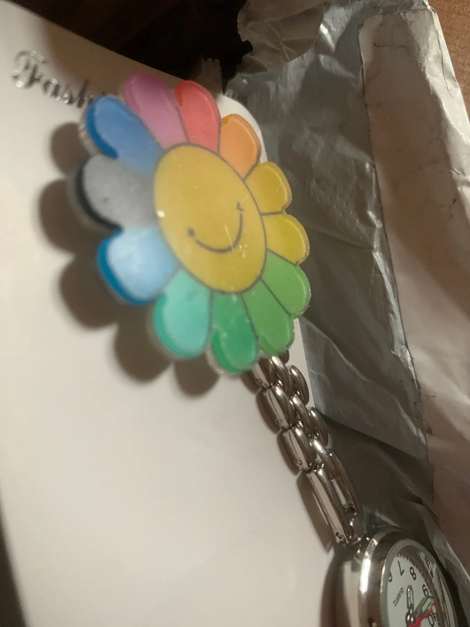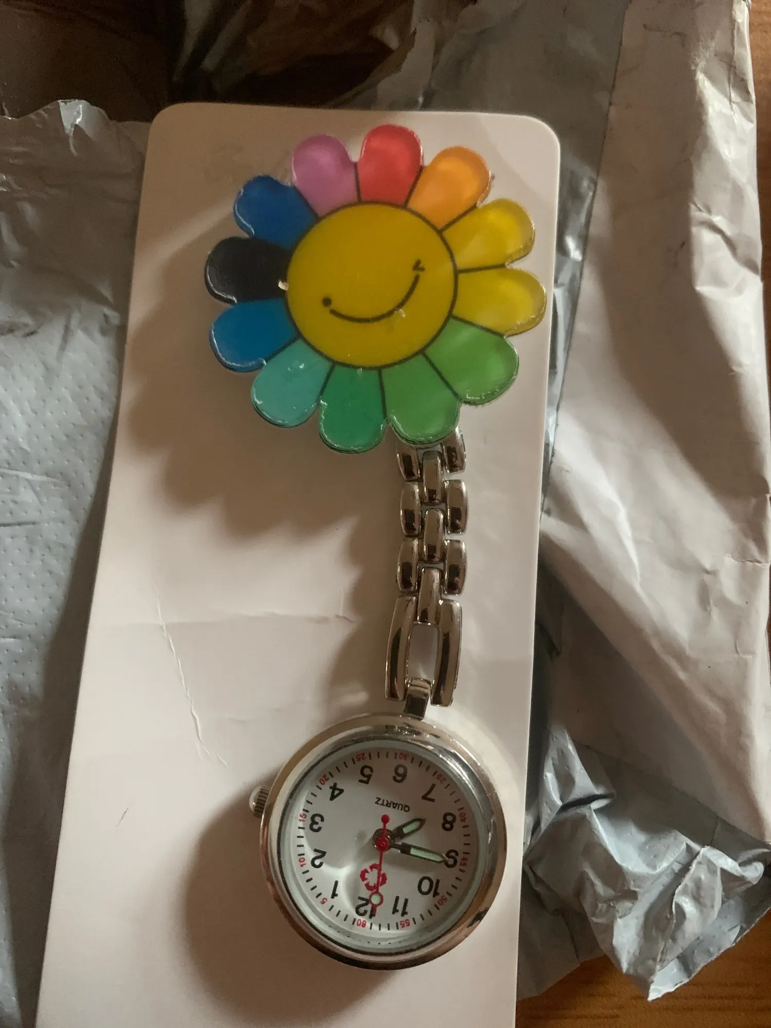 Новое поступление, модные часы медсестры, карманные часы, очаровательные портативные удобные акриловые 3D Мультяшные декоративные винтажные серебряные часыOOTDTY100% новый и высокое качествоОсобенности:1. Этот вид часов является старомодным медсестры часы, в бывшее время, эти часы специально используются для медсестры.2. В отличие от обычных часов, эти часы с короткой цепочкой, но не носят на запястье, хранят в кармане или кармане одежды.3. Изготовлен из акрила, высокой интенсивности и высокого качества, прочный и не легко ломается.4. Цветочный кулон-улыбающееся лицо в цветке, Радужный дизайн, креативный и индивидуальный.5. Циферблат-полный индивидуальности, милый и модный, с больничным узором в нем.6. Особенно для женщин, портативный и винтажный, отличные подарки для них.7. С подвесным зажимом, удобно надевать и снимать.Только часы, другие демонстрационные аксессуары на картинке не включены!Спецификация:Материал: сплав, акрилТип: цветокЦвет: серебристыйРазмер: один размерОбщая длина: 9,8 смЦиферблат: 2,6 см (1,02 дюйма)Количество: 1 шт.Примечание:1. Нет розничной упаковки.2. Допускается погрешность в 0-1 см из-за ручного измерения. Пожалуйста, убедитесь, что вы не возражаете, прежде чем сделать ставку.3. Из-за разницы между различными мониторами изображение может не отражать фактический цвет изделия. Спасибо!Посылка включает в себя:1 x часы