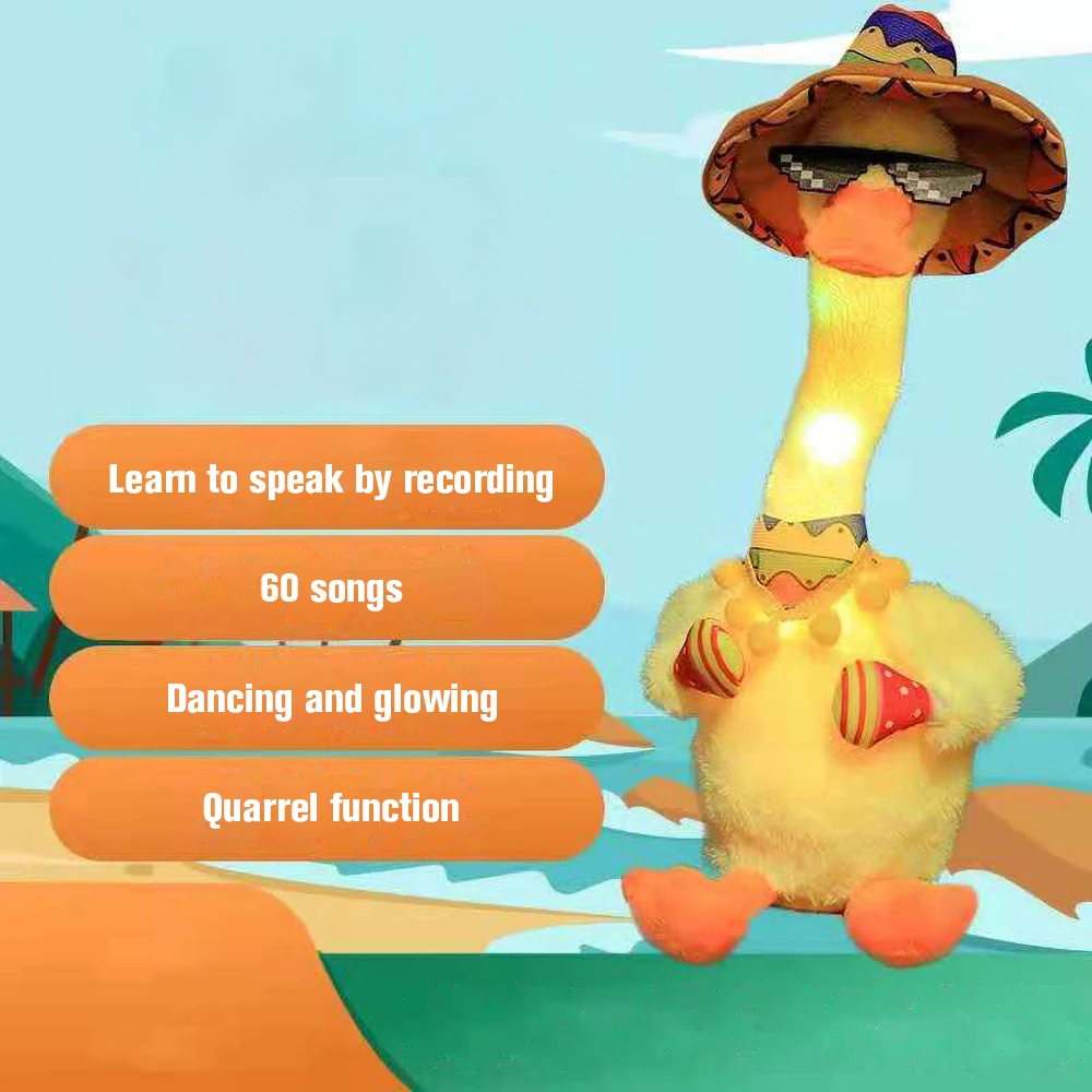Светящаяся записывающая плюшевая игрушка-кактус, плюшевая кукла, ребенок может петь и танцевать, интерактивный голос, ребенок учится говорить, утка, мексиканский стиль