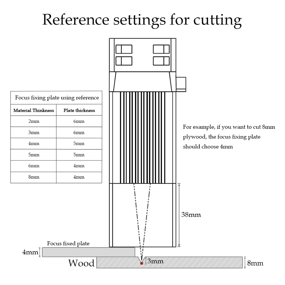 Соответствует описанию. Для cnc3018pro крепление надо переделывать, лазер не влезает. Фокус автоматический, выставлять расстояния всё согласно таблицы в описании.