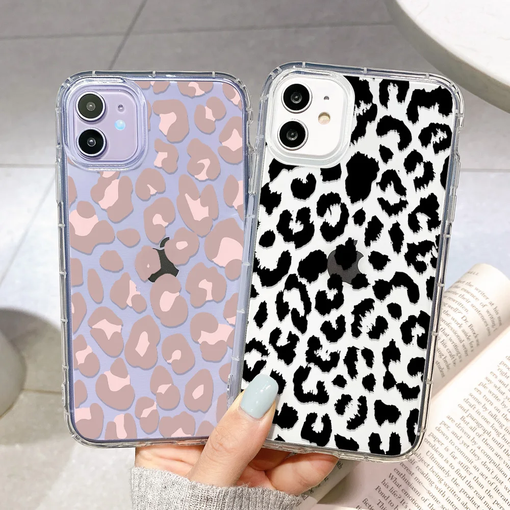 Чехол с леопардовым рисунком для iPhone 11 12 Pro Max, прозрачный ч...