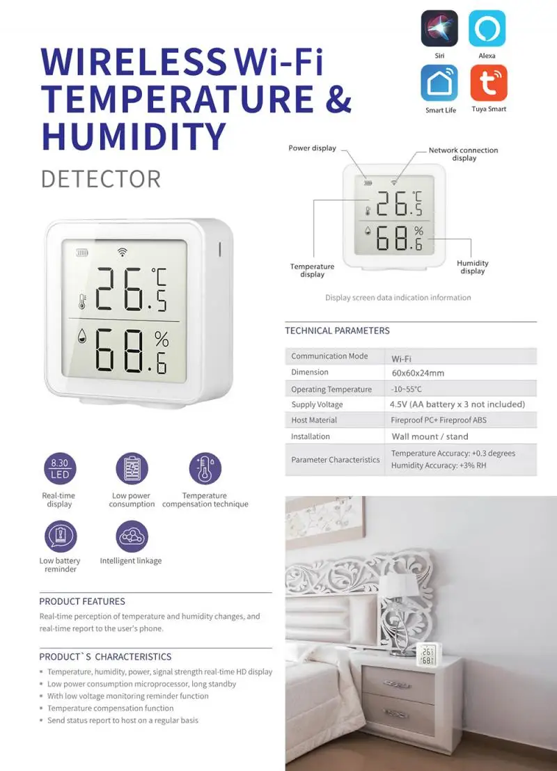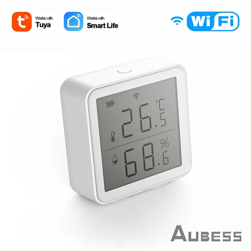 Умный Wi-Fi датчик температуры и влажности Tuya, комнатный гигрометр, термометр с ЖК-дисплеем, работает с Alexa Google Assistant