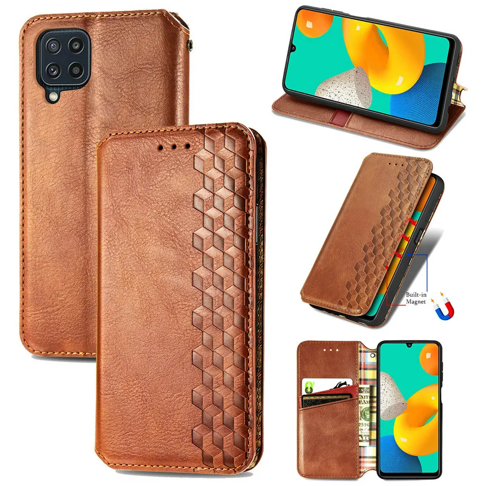 Роскошный кожаный чехол-книжка M22 M32 M52 с магнитной текстурой, чехол для Samsung Galaxy M12, флип-чехол для Samsung M 32 12 22 52