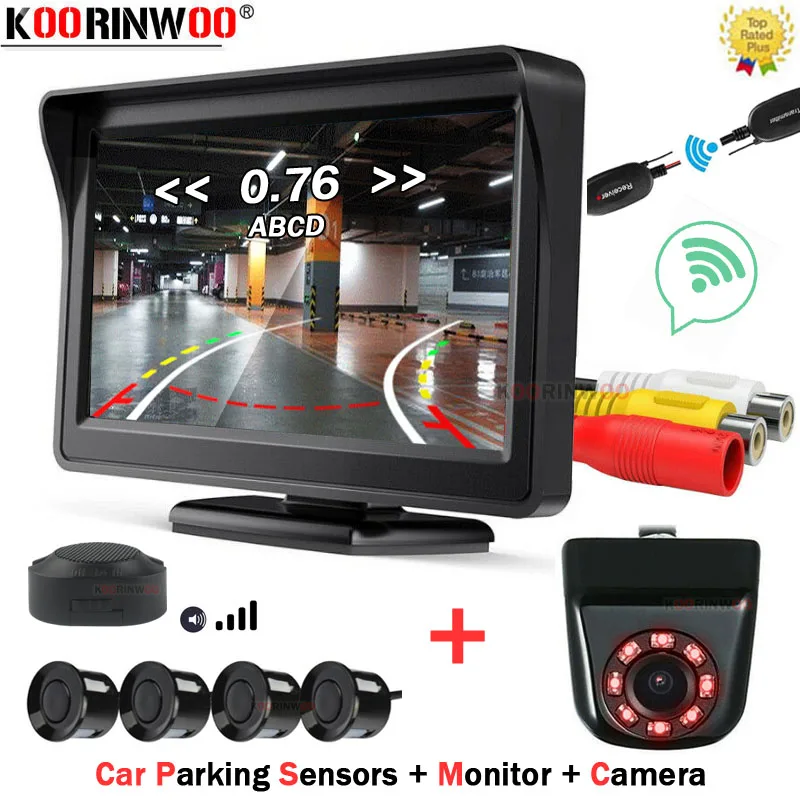 Автомобильная интеллектуальная система Koorinwoo для автомобилей, видео датчик парковки, широкоугольная камера, монитор заднего вида, отображение изображений на зеркале расстояния