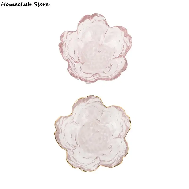 Маленькое Стеклянное блюдо в скандинавском стиле, стеклянная миска для соуса с золотой инкрустацией, Мини японские цветки вишни, зеркальное блюдо для мороженого, сала для фруктов