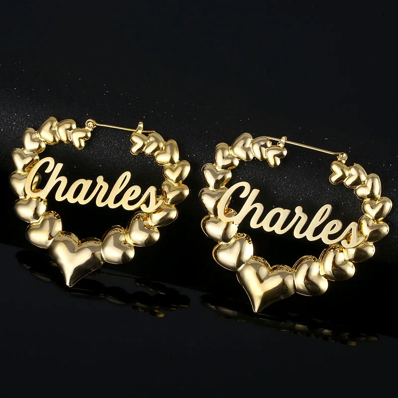 Название: модные Бамбуковые серьги-кольца в форме сердца из нержавеющей стали на заказ для женщин, персонализированные ювелирные украшения на золотой хип-хоп заказ