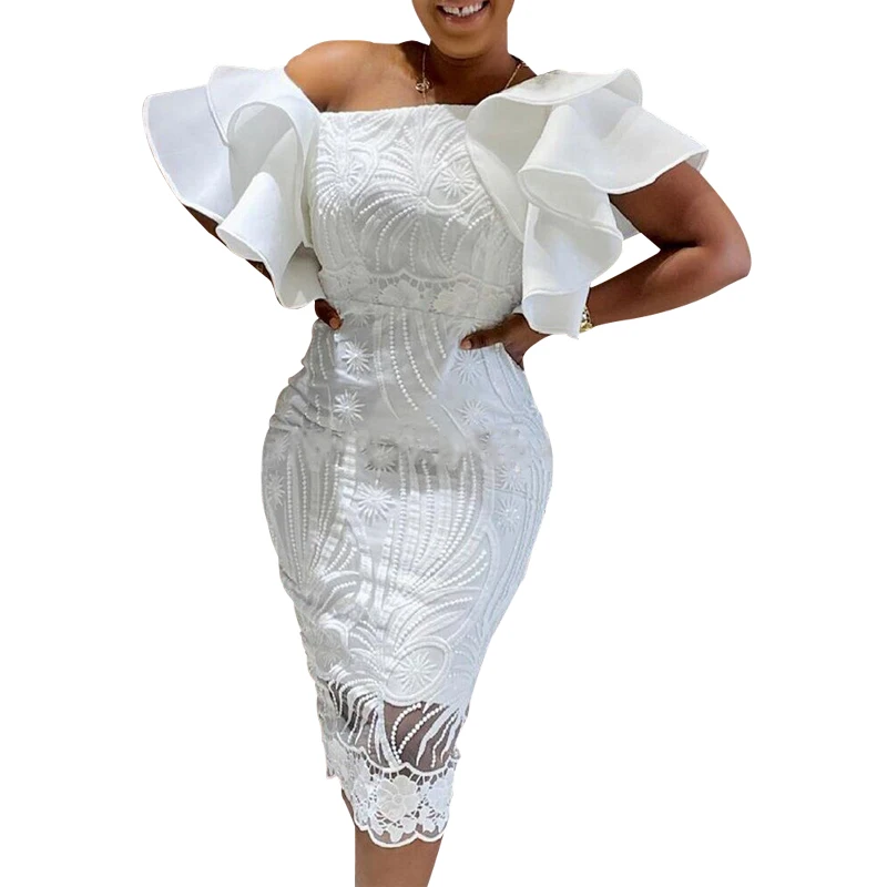 Женское вечернее платье, с оборками, с высокой талией, с косым вырезом, однотонное, элегантное, летнее