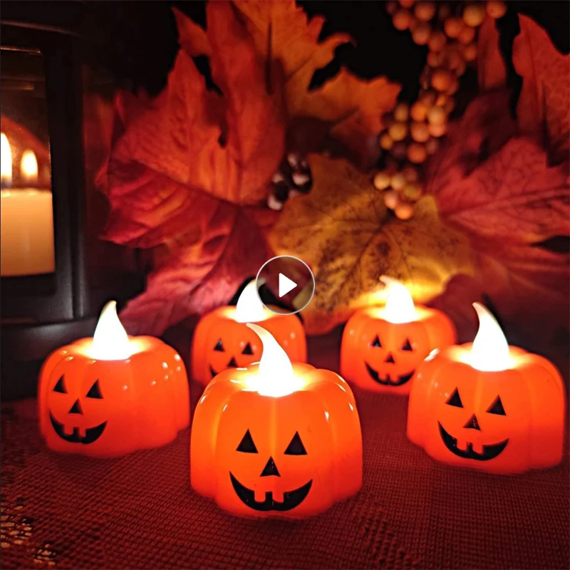 Лампа в виде тыквы на Хэллоуин, 12 шт., Светодиодная свеча, фонарь ...