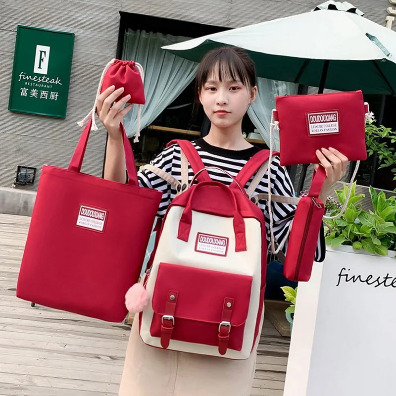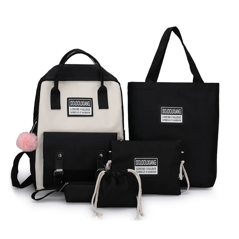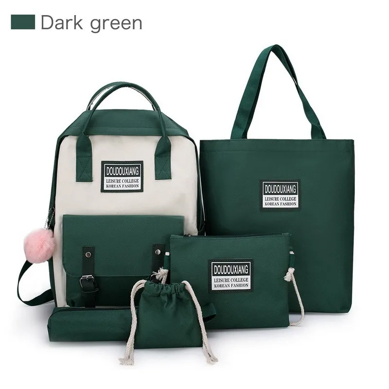 Рюкзак женский школьный из 5 предметов, вместительный ранец для подростков, Холщовая Сумка для мальчиков и девочек