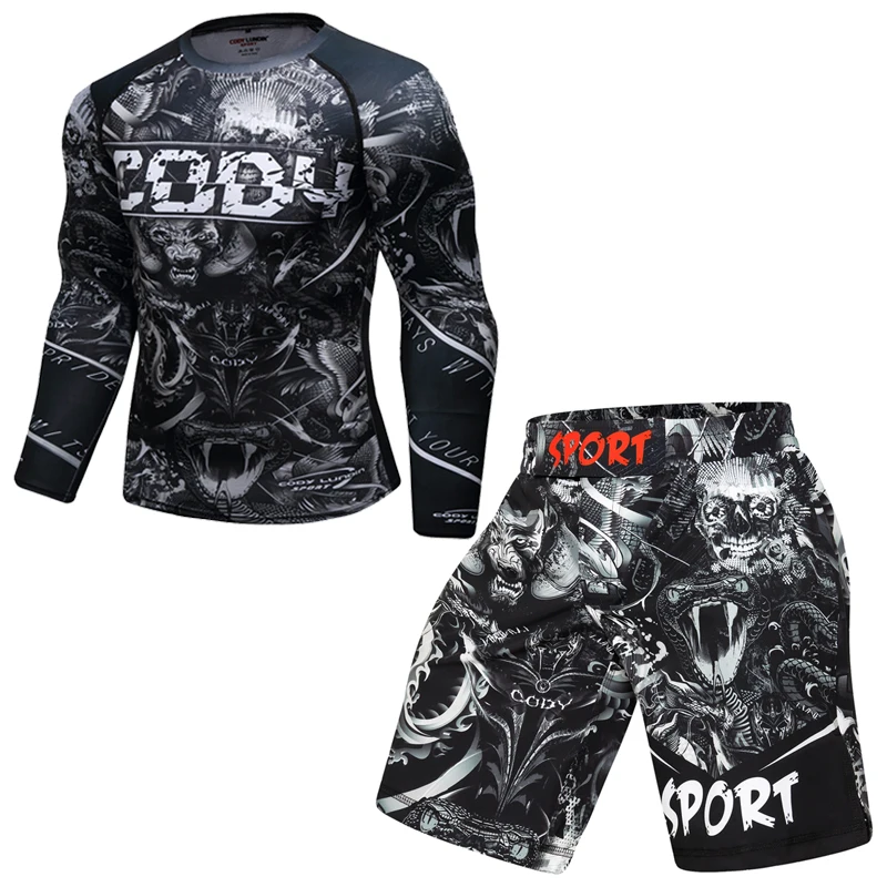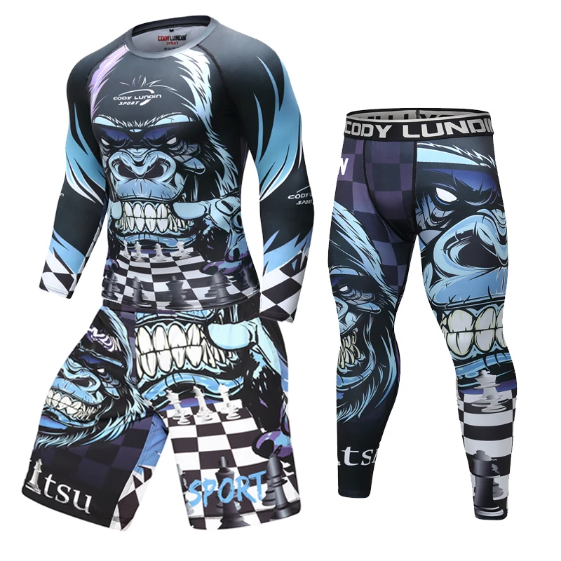 Комплект для бокса, компрессионные трикотажные штаны с 3D-принтом орангутана, Рашгард, кикбоксинг, обтягивающие футболки, брюки, муай тай, ММА, одежда для бокса