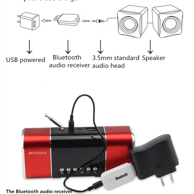 Подключите флеш-накопитель Bluetooth непосредственно к usb-порту динамика и подключите аудиокабель к Порту AUX.