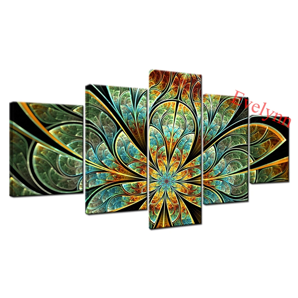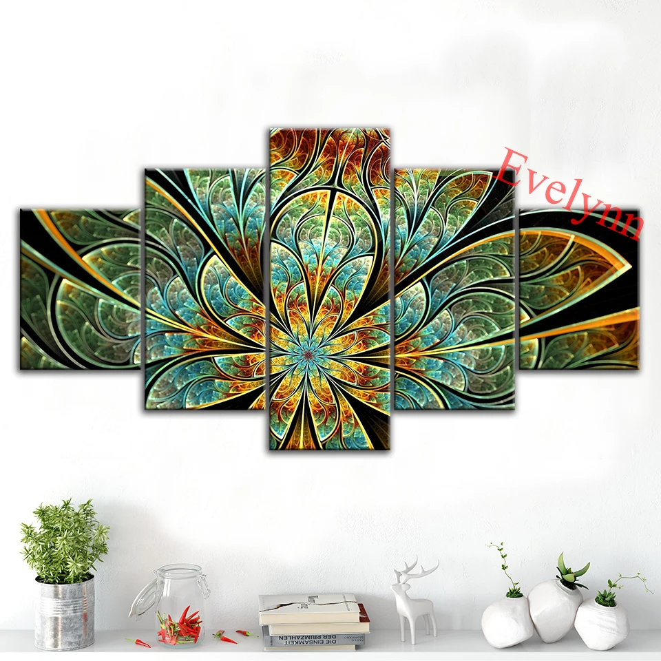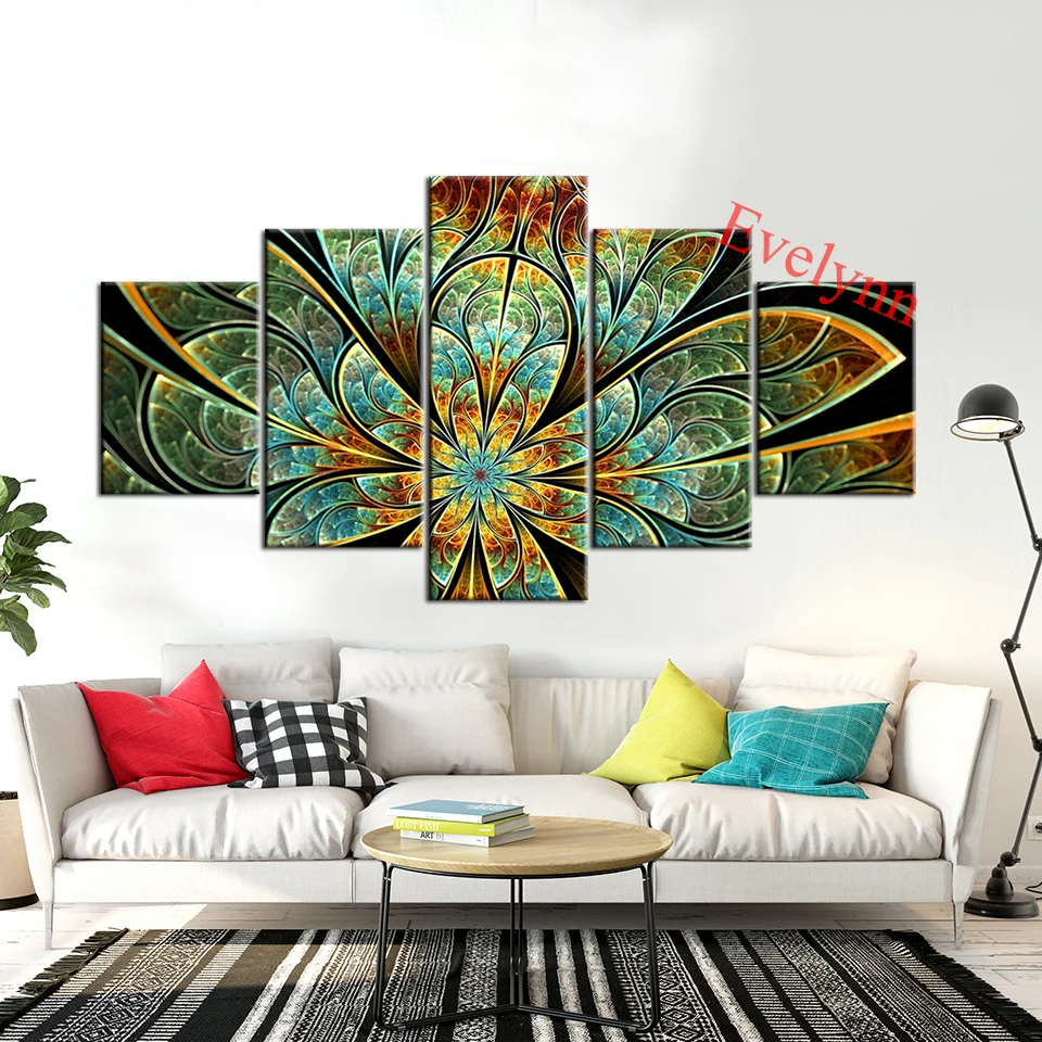 Настенное искусство, холст, абстрактный цветок, фрактал, 5 шт., художественный плакат, печатная Модульная картина Hd для гостиной, декоративная рамка