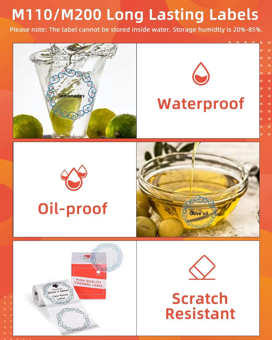 Название продукта: pomemo M110 M200 принтер этикеток круглый квадратный бумажный стикер многоцелевой клейкая лента самоклеящаяся термобумага черный на белом
