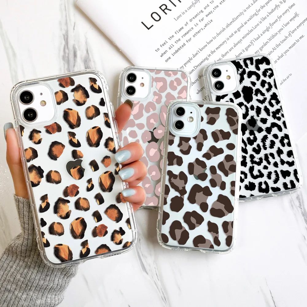 Чехол с леопардовым рисунком для iPhone 11 12 Pro Max, прозрачный ч...