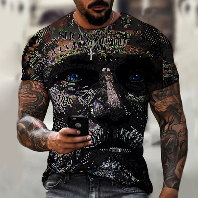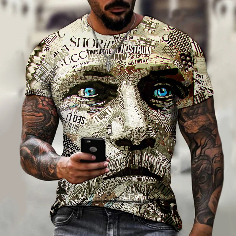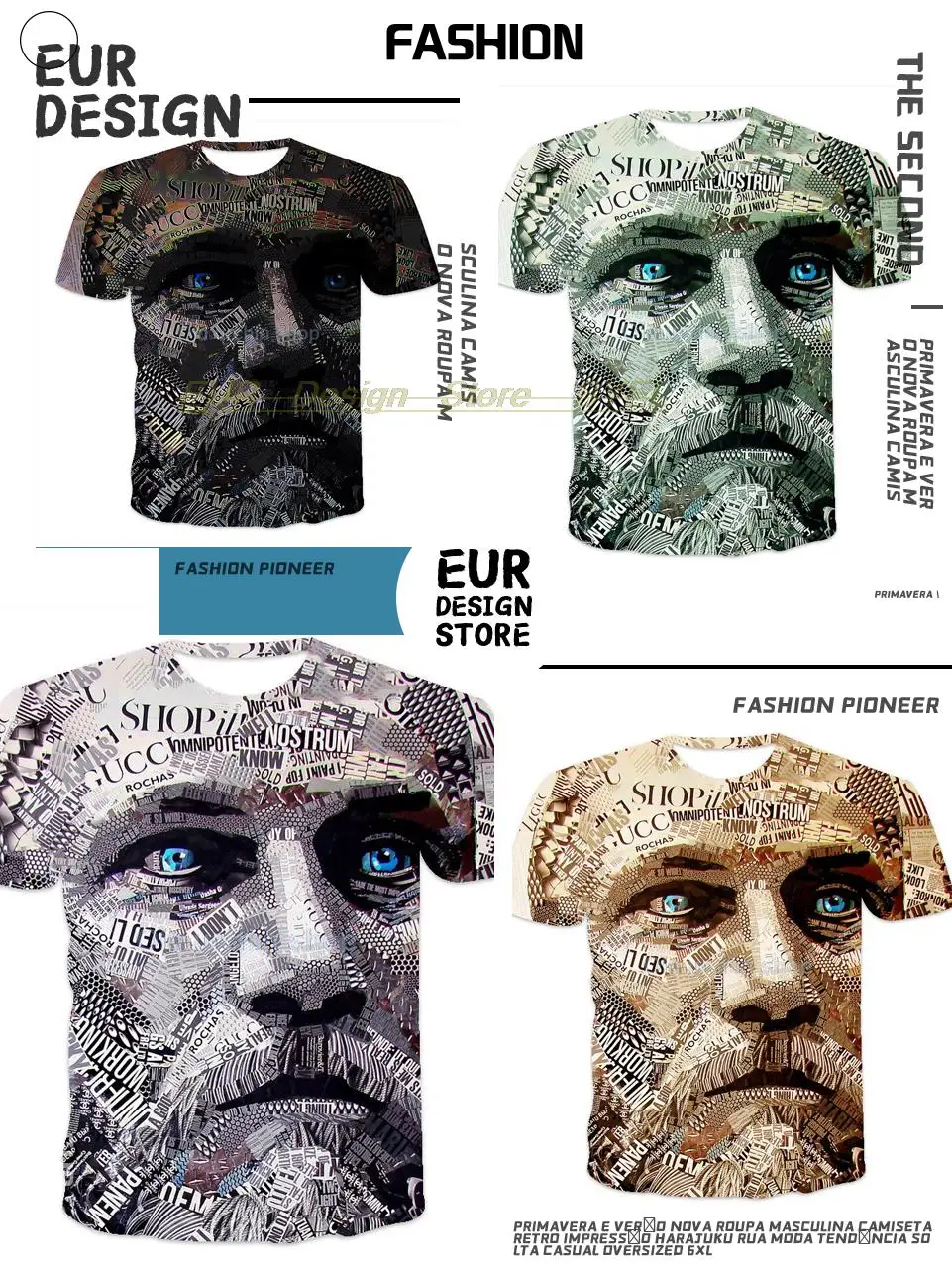 Подарки для мужчин Летняя мужская газета портрет 3D художественный принт три-ди Мужская футболка уличная спортивная футболка крутая летняя футболка с круглым вырезом