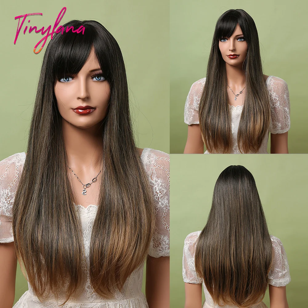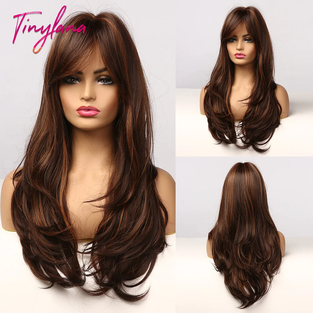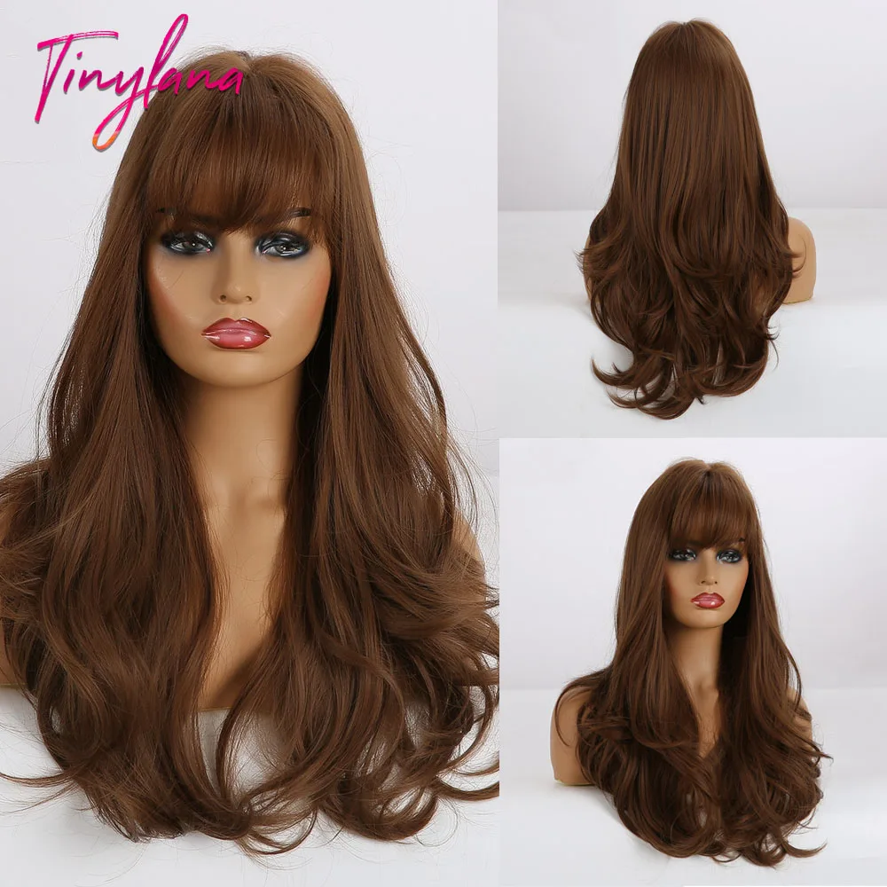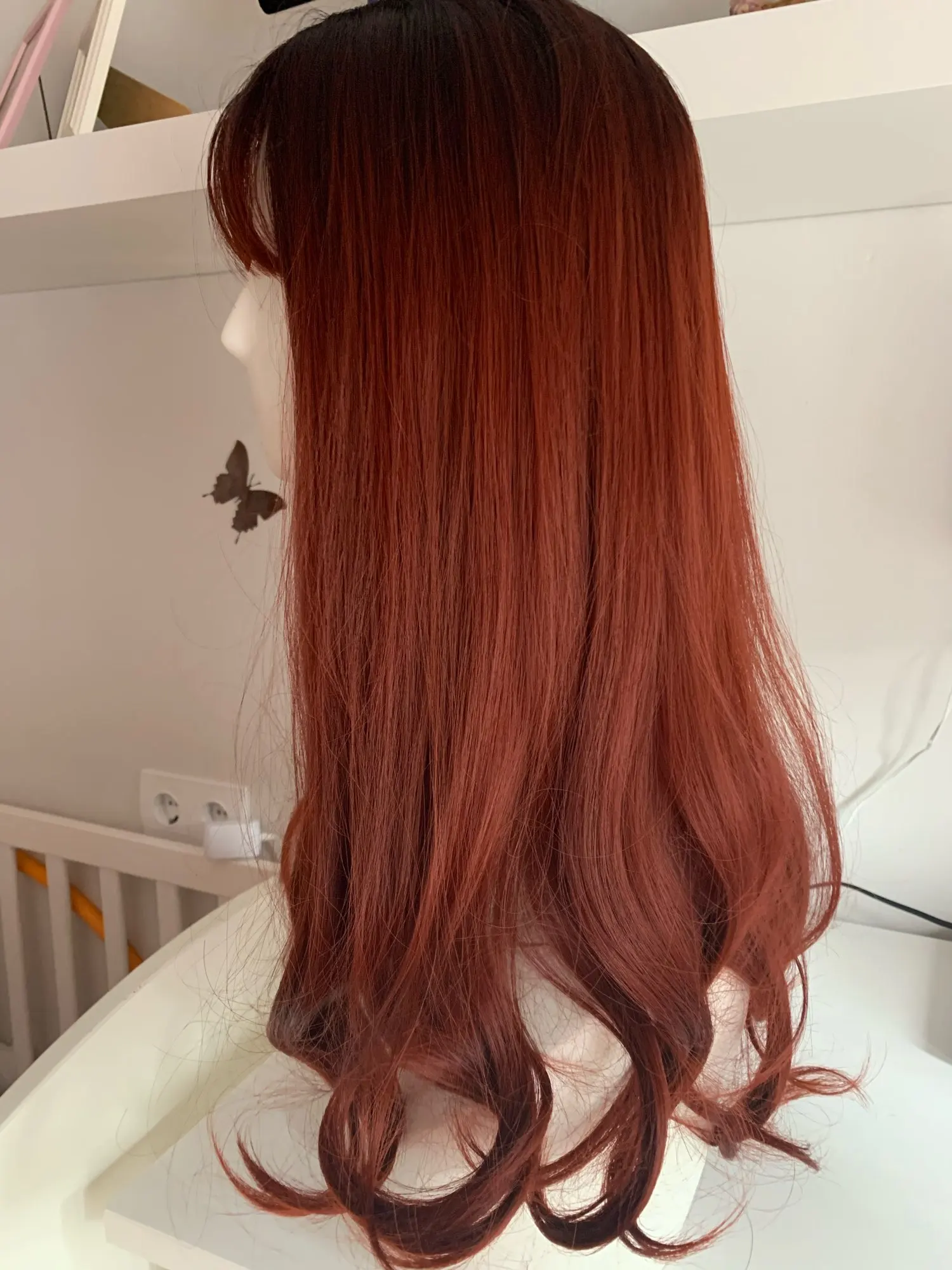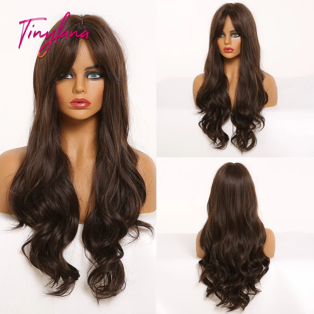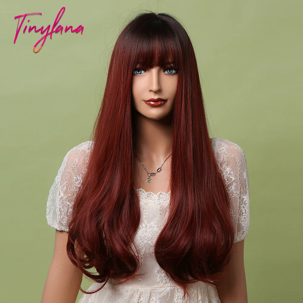 Крошечный LANA, черный корень, красное вино, парики с полной челкой, длинные волнистые синтетические парики для женщин, косплей, женские парики, жаростойкие волосы