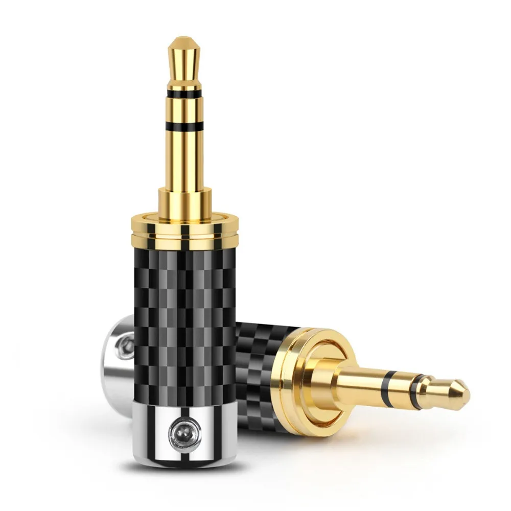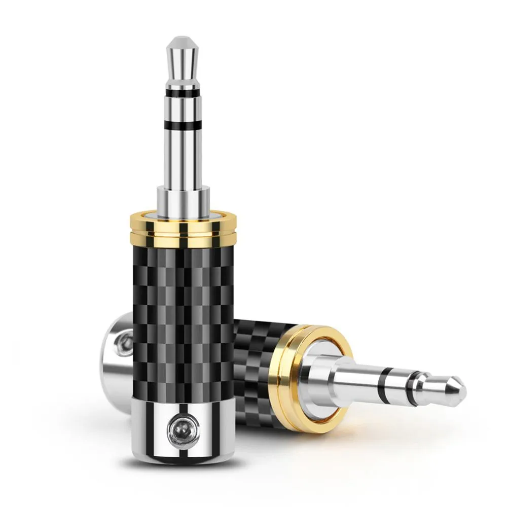 Стерео 3,5 мм 3-полюсный разъем для наушников из углеродного волокна, медь, золотородиевое покрытие, разъем для наушников, аудиоразъем 3,5, мужской металлический адаптер