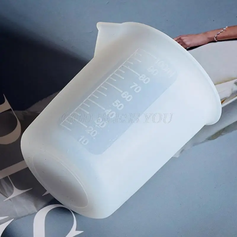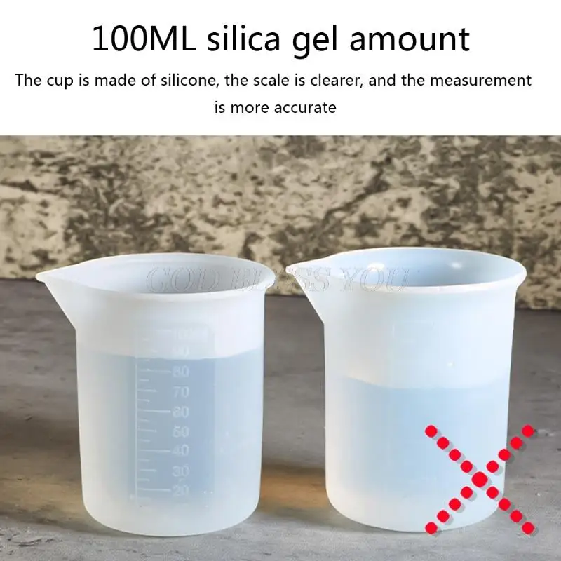 Легко моется-изготовлен из силикона, поверхность гладкая, гибкая, не липкая, легко моется, очень подходит для измерения и смешивания эпоксидной смолы, клея и других жидкостей.