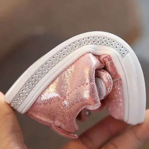 Кроссовки на шнуровке для девочек, мягкая подошва, блестки, плоская подошва, Нескользящие, блестящие, повседневная обувь с бантом